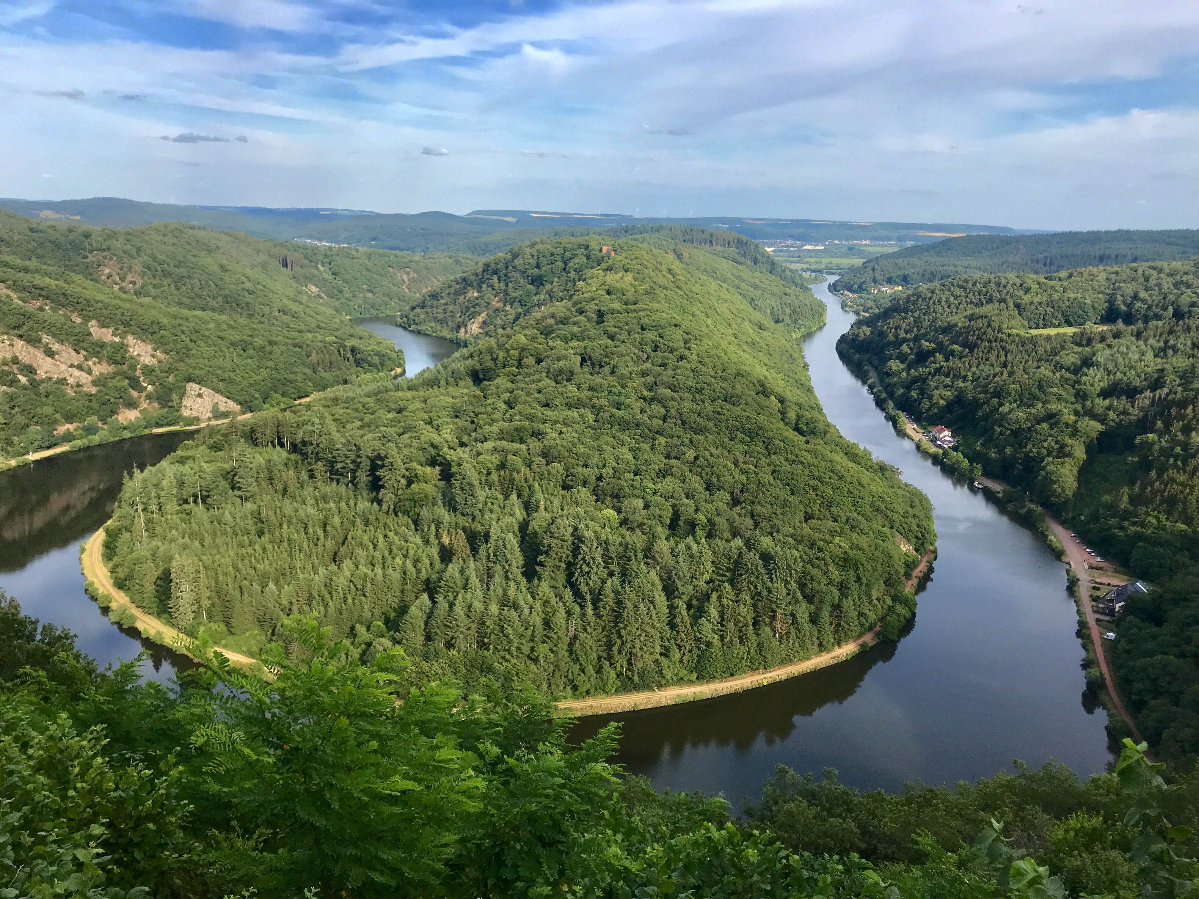 On a 11min ride from the city of Mettlach is the Cloef, a vantage point from where one can see the amazing view of the Saarschleife. Once you get to Cloef, right through the parking, there are also several restaurants and pubs available. From the parking, it is a 15minute walk to reach the viewing terrace from where you can see this view.